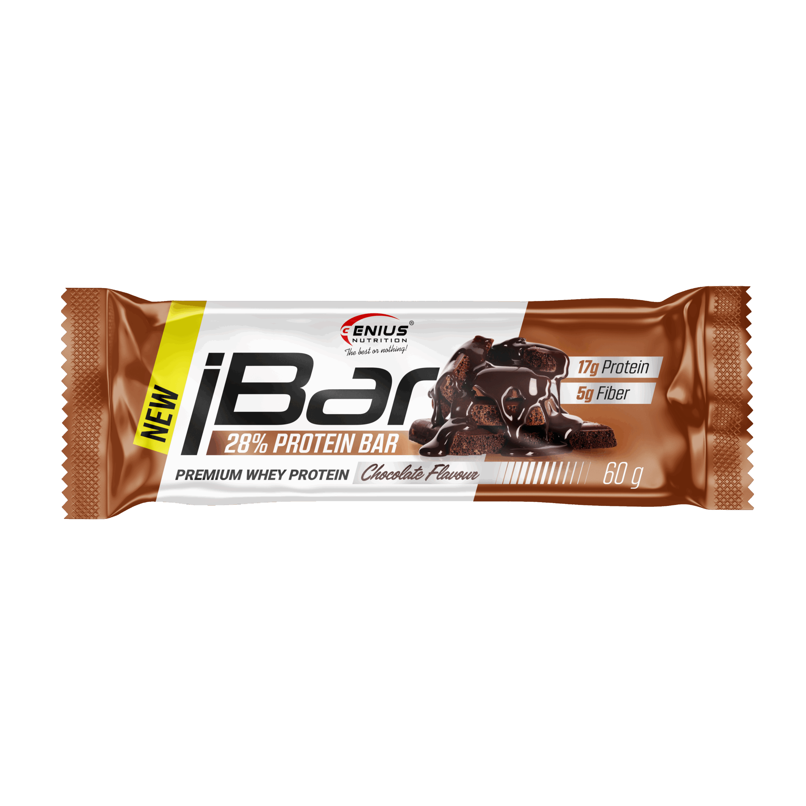 iBar од Genius Nutrition е вкусна протеински бар кој содржи 31-32% протеини, 217 калории, 3,5 g масти и 27 g јаглени хидрати од кои 8-9 g шеќери, 6 g влакна и засладен со стевиа. Совршен за периоди пред тренинг или секогаш кога ви треба ужина богата со протеини и амино киселини.